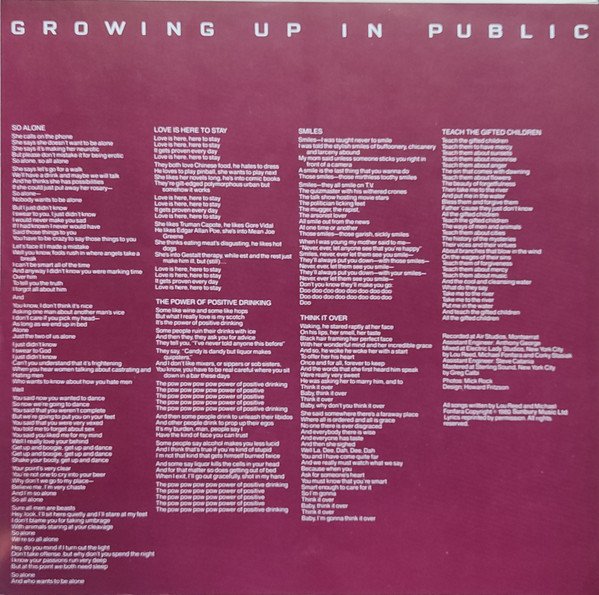 Lou Reed, Growing Up In Public – LP